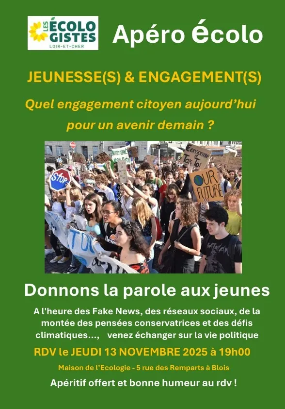 La Maison de l'écologie à Blois accueillera les jeunes ... et les moins jeunes à l'occasion de son premier Café Ecolo le jeudi 13 novembre 2025 à partir de 19h00.